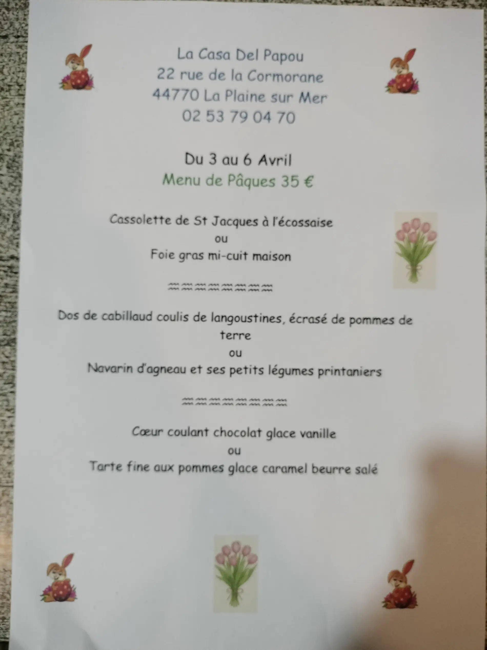 menu de Pâques